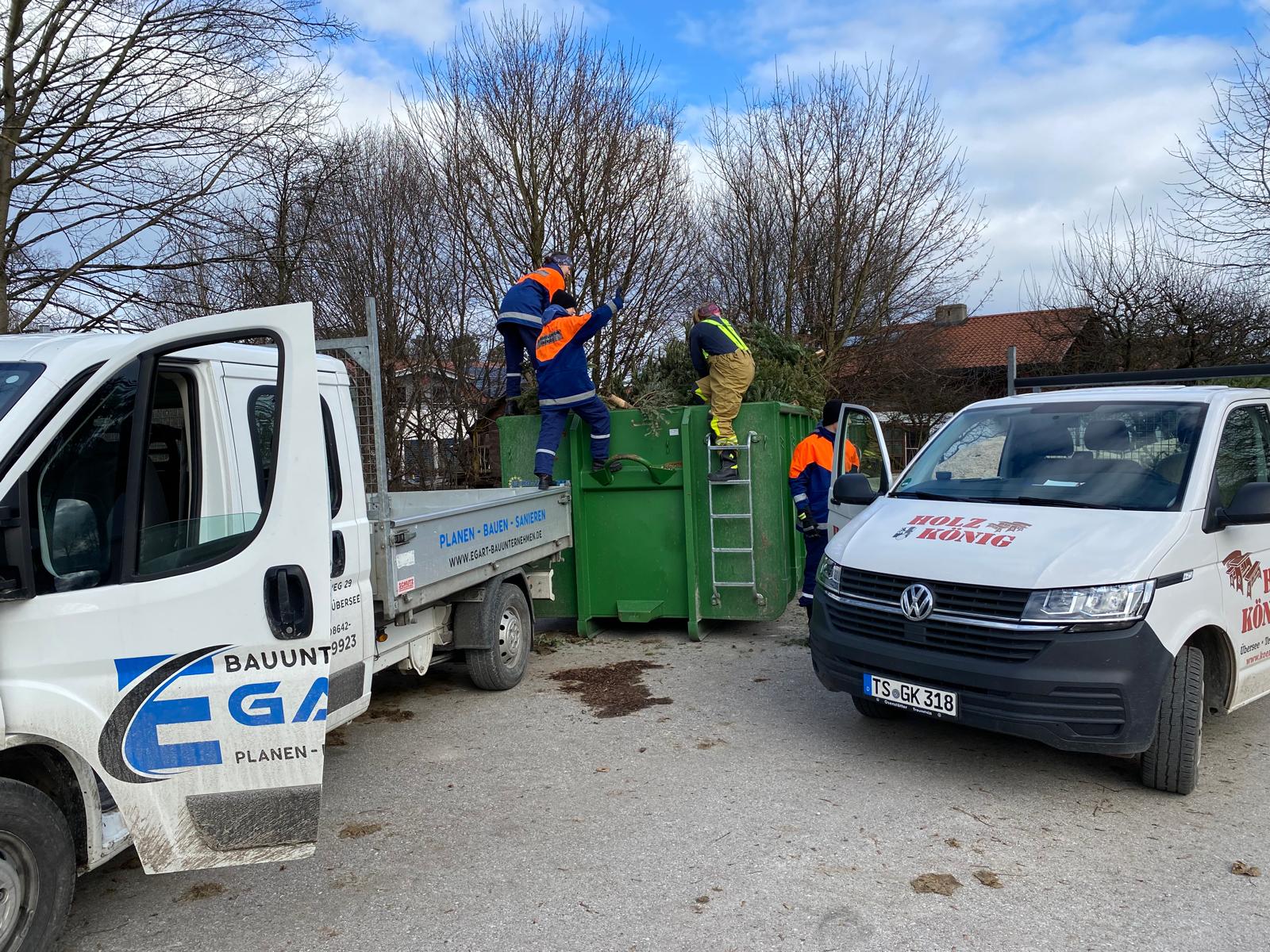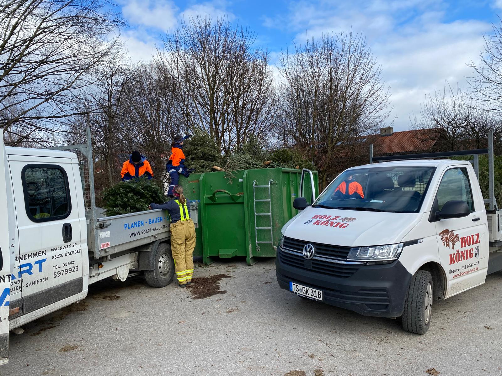 Durch super Teamwork unserer Mädels und Jungs sowie einiger aktiver Feuerwehrler, die fleißig mithalfen, lief die gesamte Aktion wieder gut und schnell ab und die 434 ausgedienten Christbäume konnten erfolgreich eingesammelt werden.Wir bedanken uns wieder recht herzlich bei den Unternehmen von Hans Stein und Florian Egart sowie Schorsch König für die geliehenen Pritschenwagen und bei Markus Ebner, der mit Traktor und Rückewagen im Einsatz war. Außerdem bedanken möchten wir uns noch bei der Gemeinde und dem Bauhof für den Lagerplatz der Bäume und dem Bereitstellen der nötigen Gerätschaften.