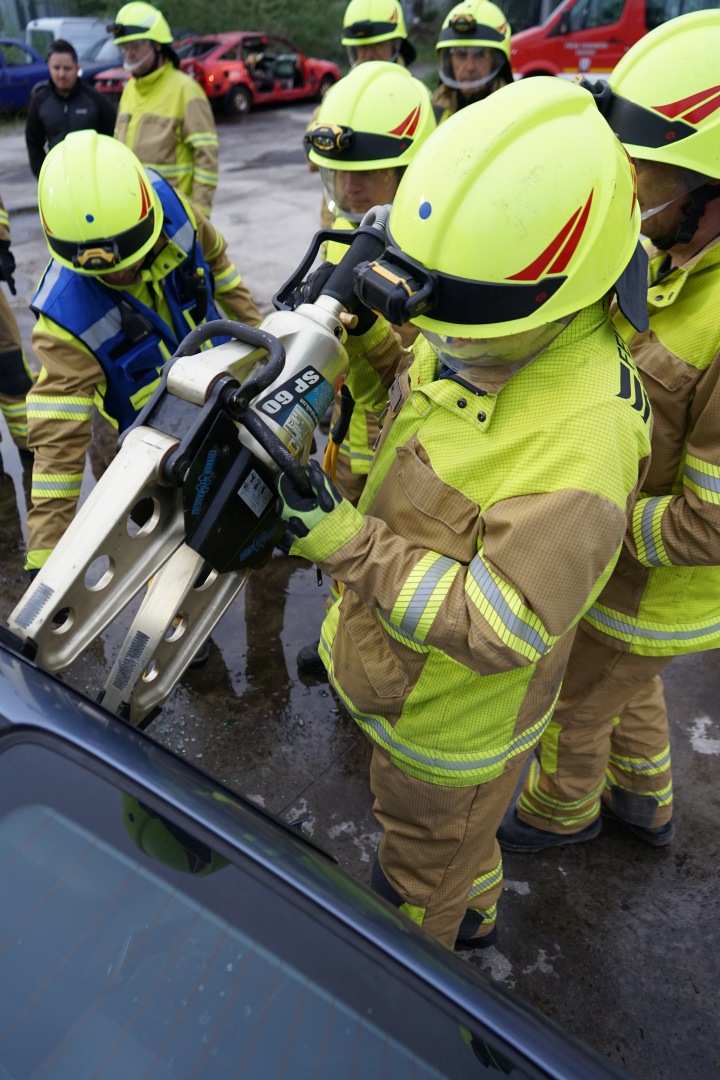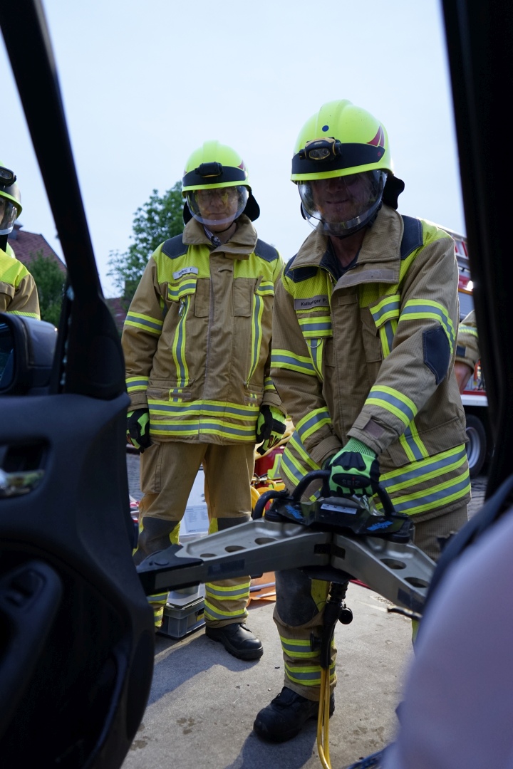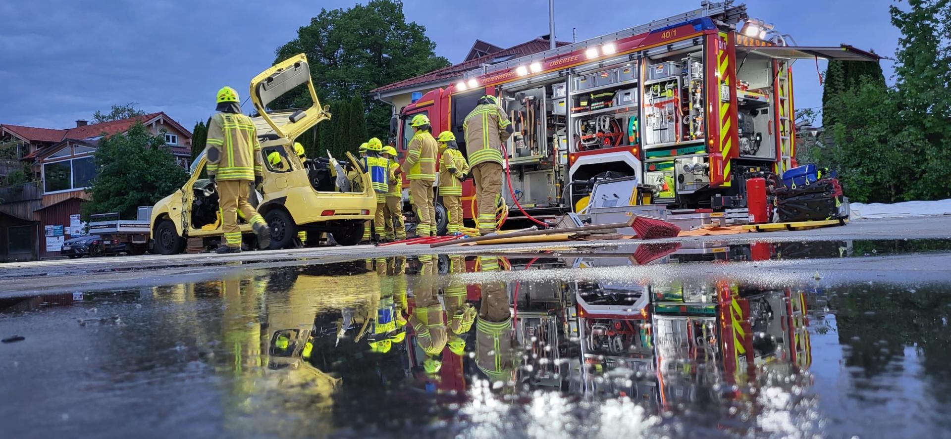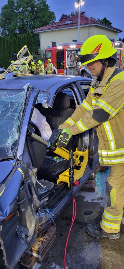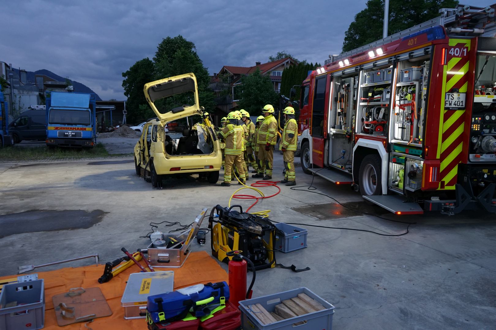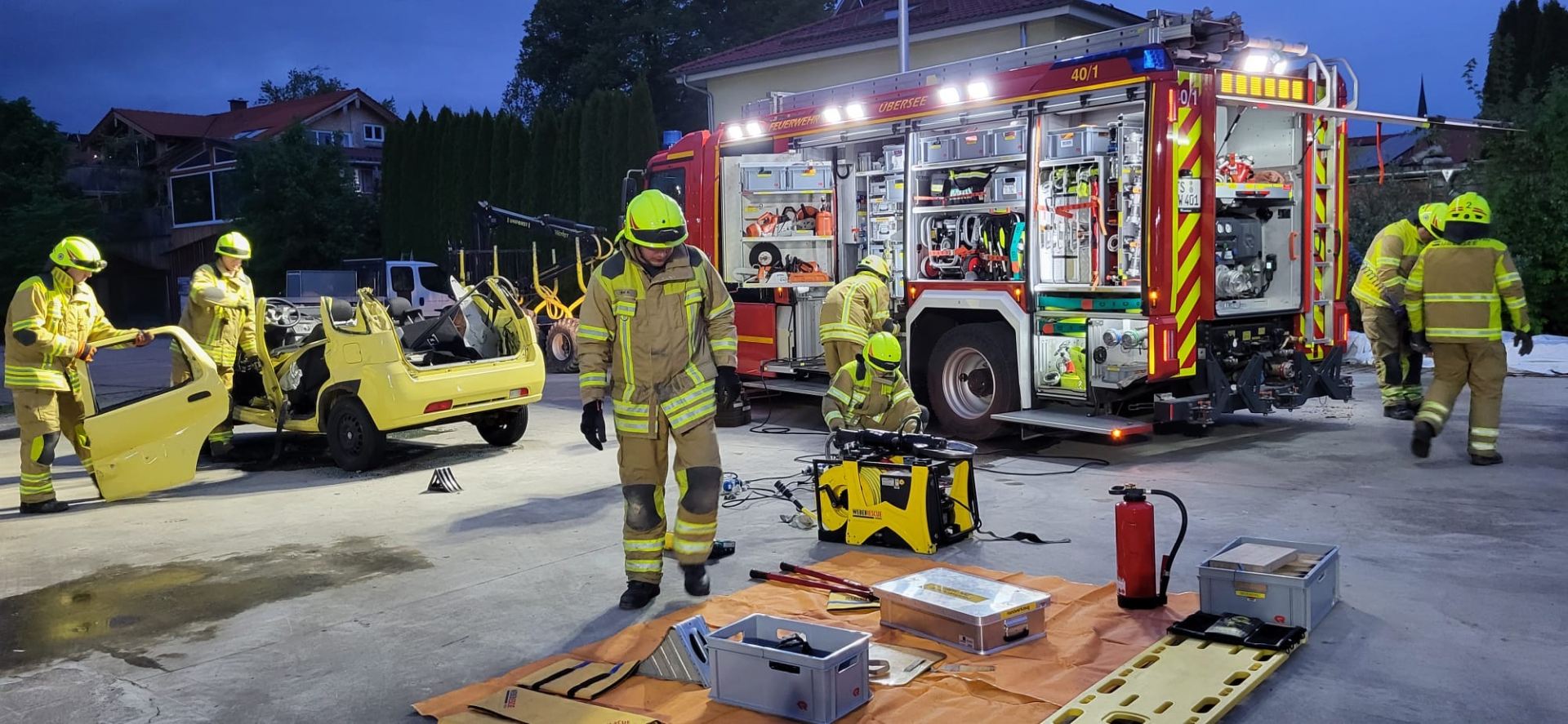 Eine Schulübung zu den Grundtätigkeiten bei Verkehrsunfällen mit eingeklemmten Personen fand vergangenen Mittwoch in Übersee statt. Das Ziel war, dir Kenntnisse im Umgang mit Rettungsgeräten wie Schere und Spreizer zu vermitteln, damit im Ernstfall schnell und sicher gehandelt werden kann.