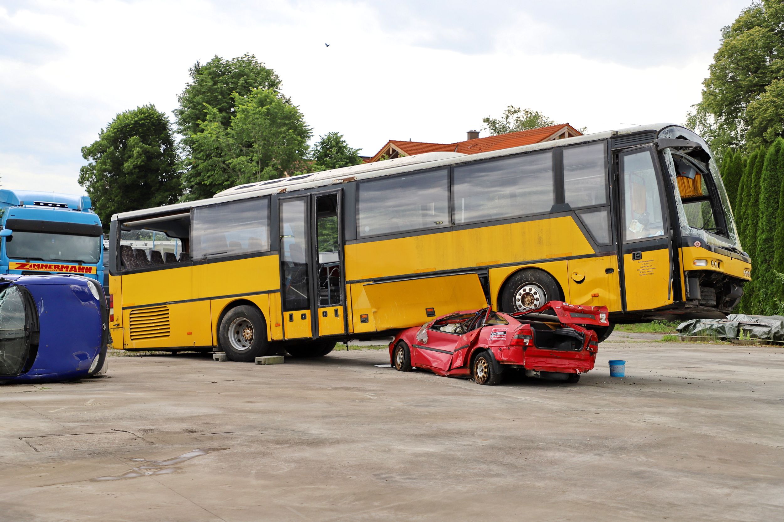 Verkehrsunfall auf der Autobahn. Das Drehbuch sah vor, dass ein Bus mit einem Pkw