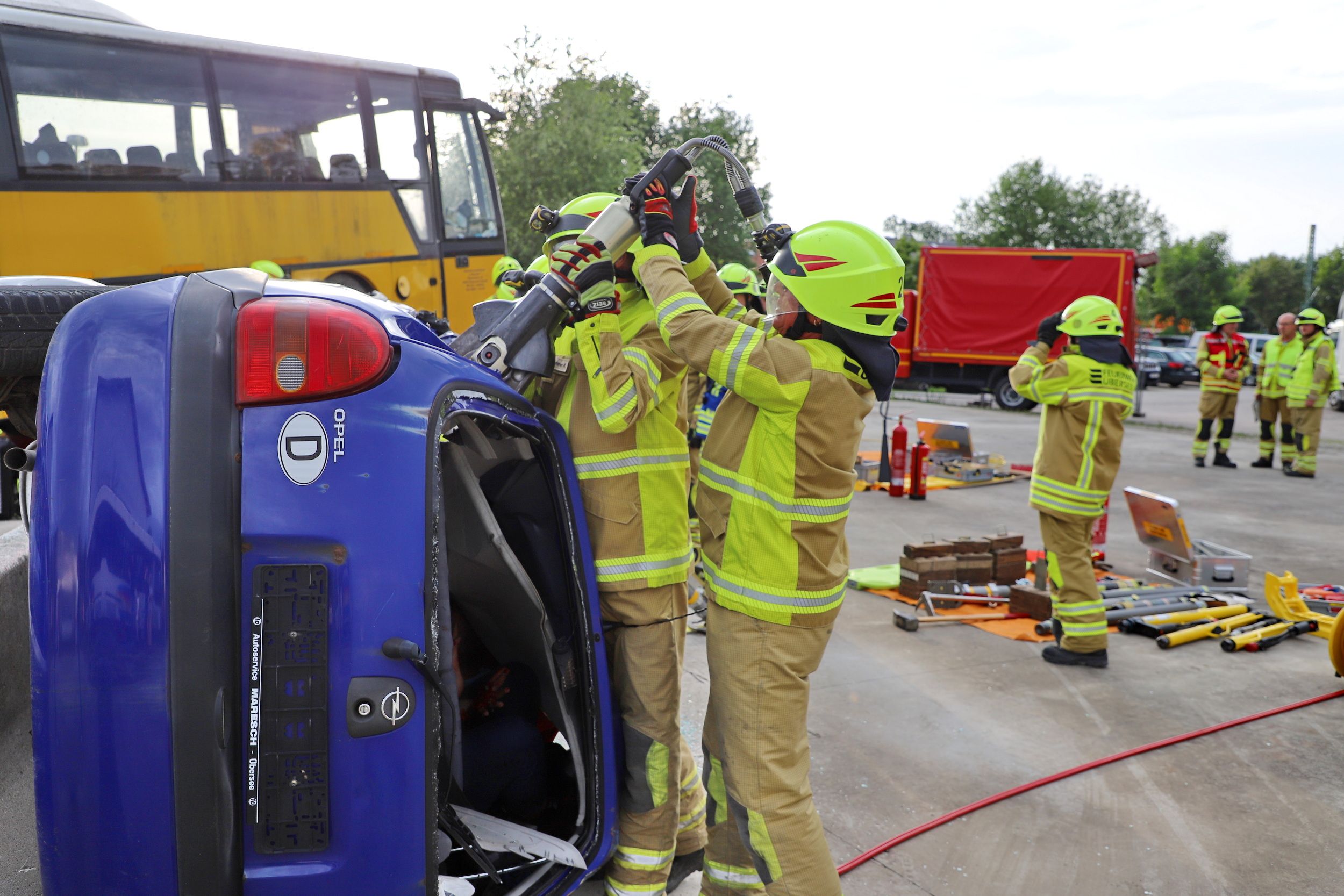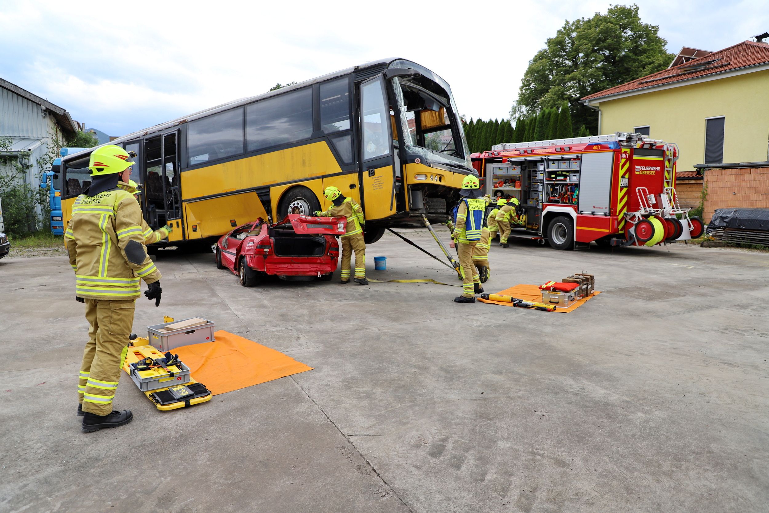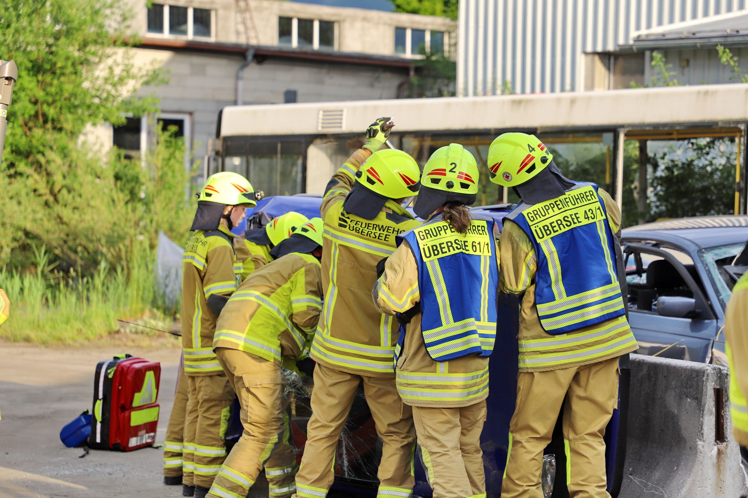 Bus und PKWs kollidieren – 40 Einsatzkräfte trainierten in Übersee den