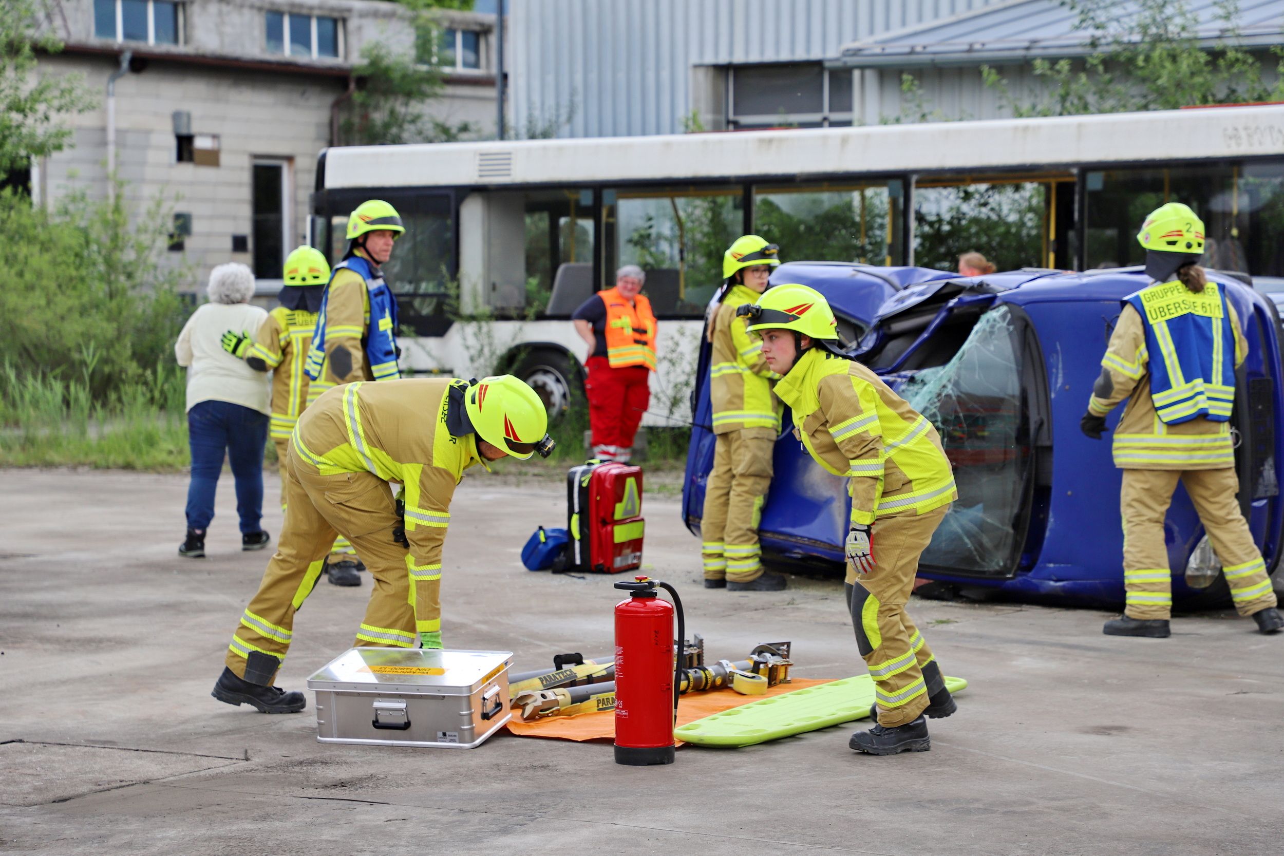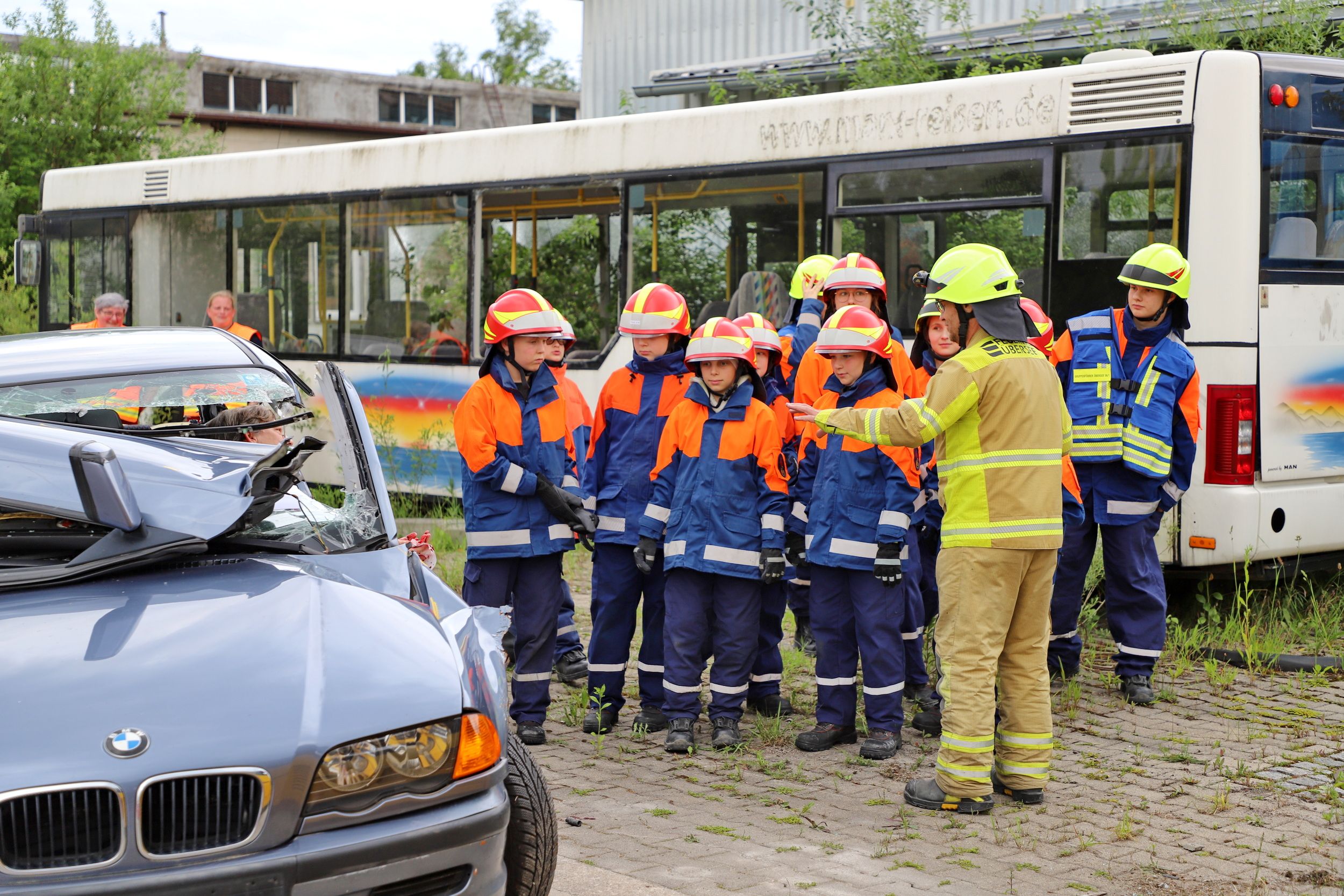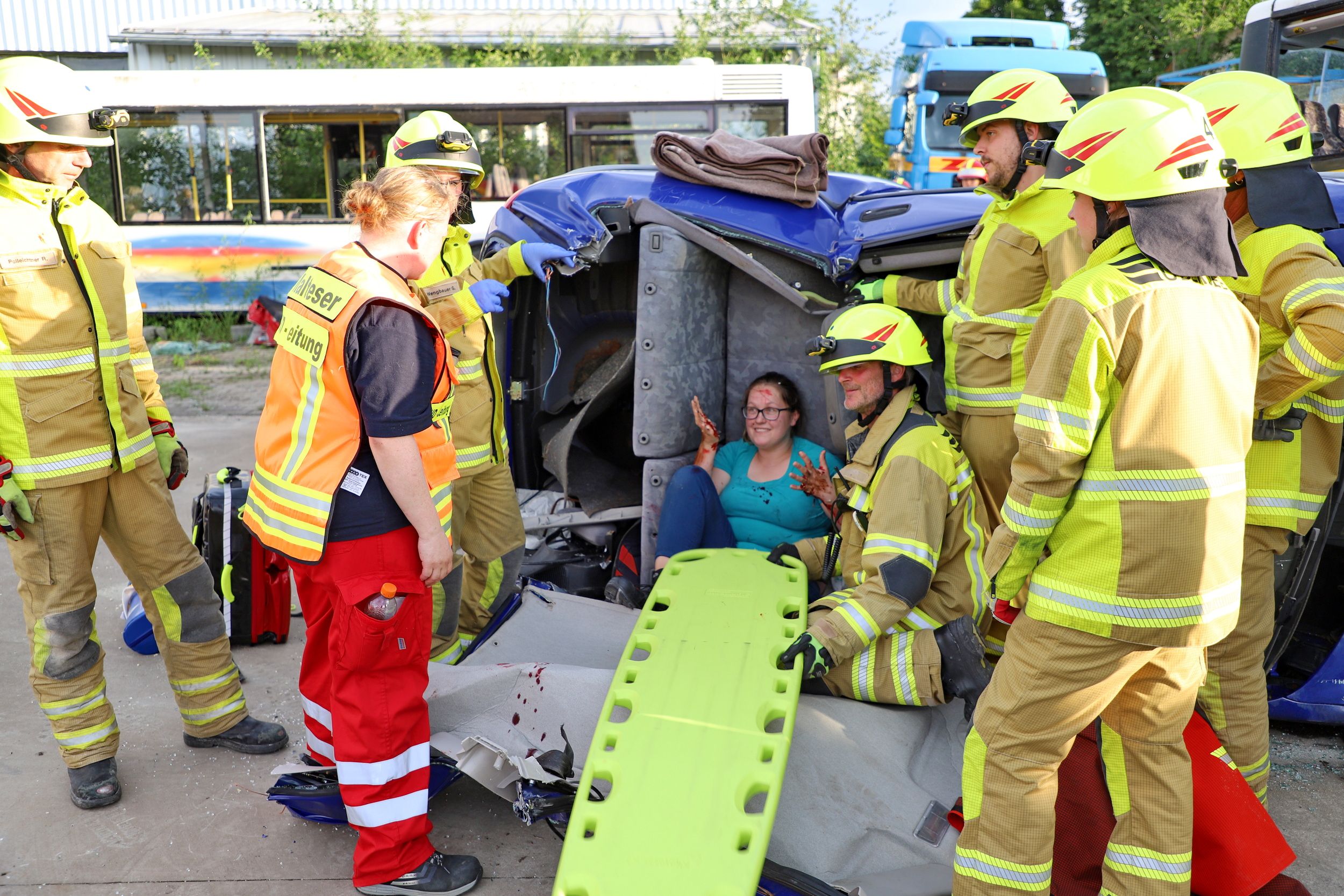 Bus und PKWs kollidieren – 40 Einsatzkräfte trainierten in Übersee den