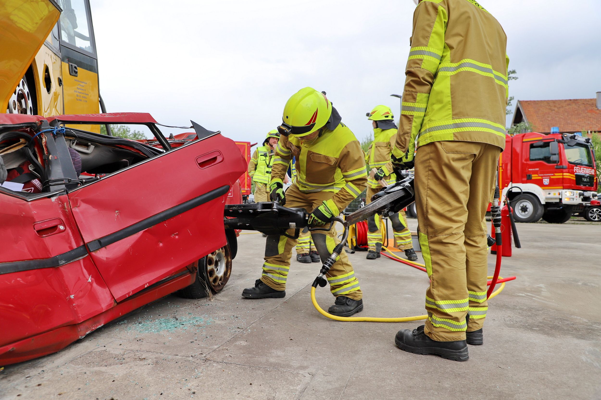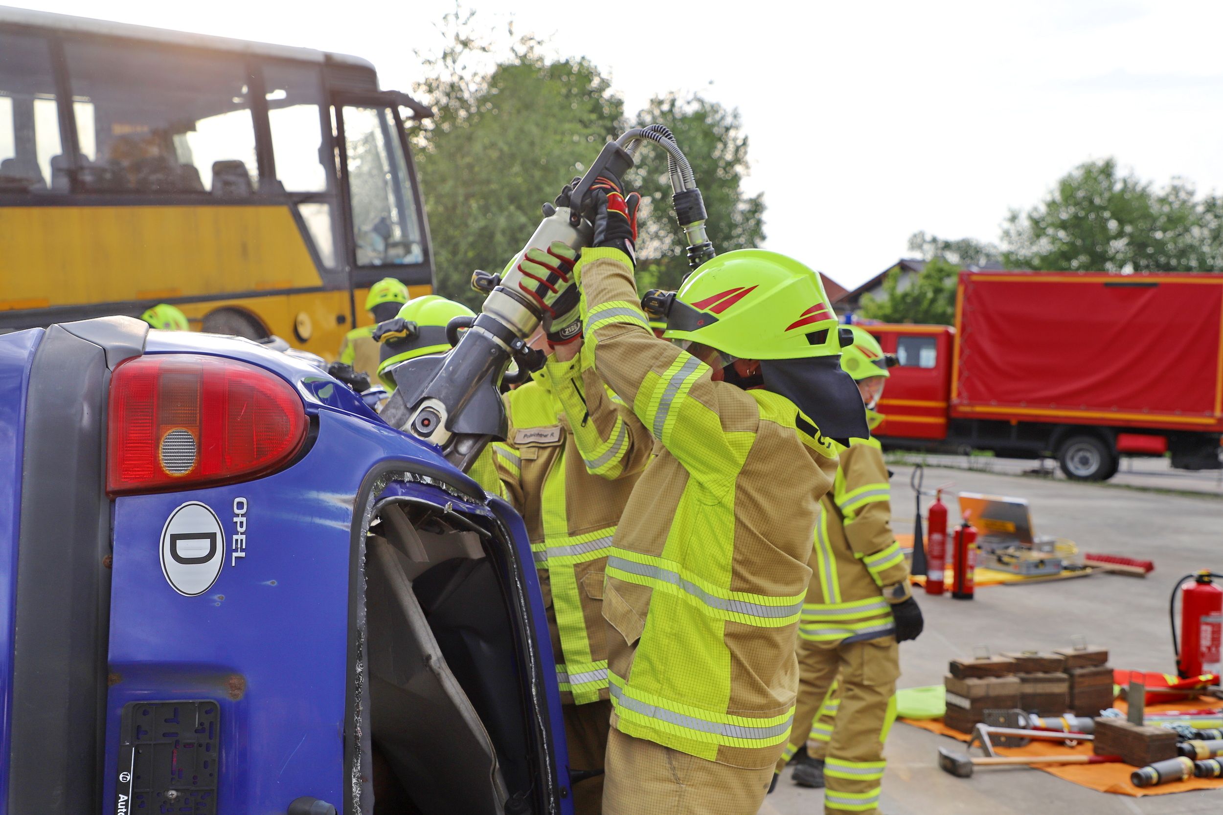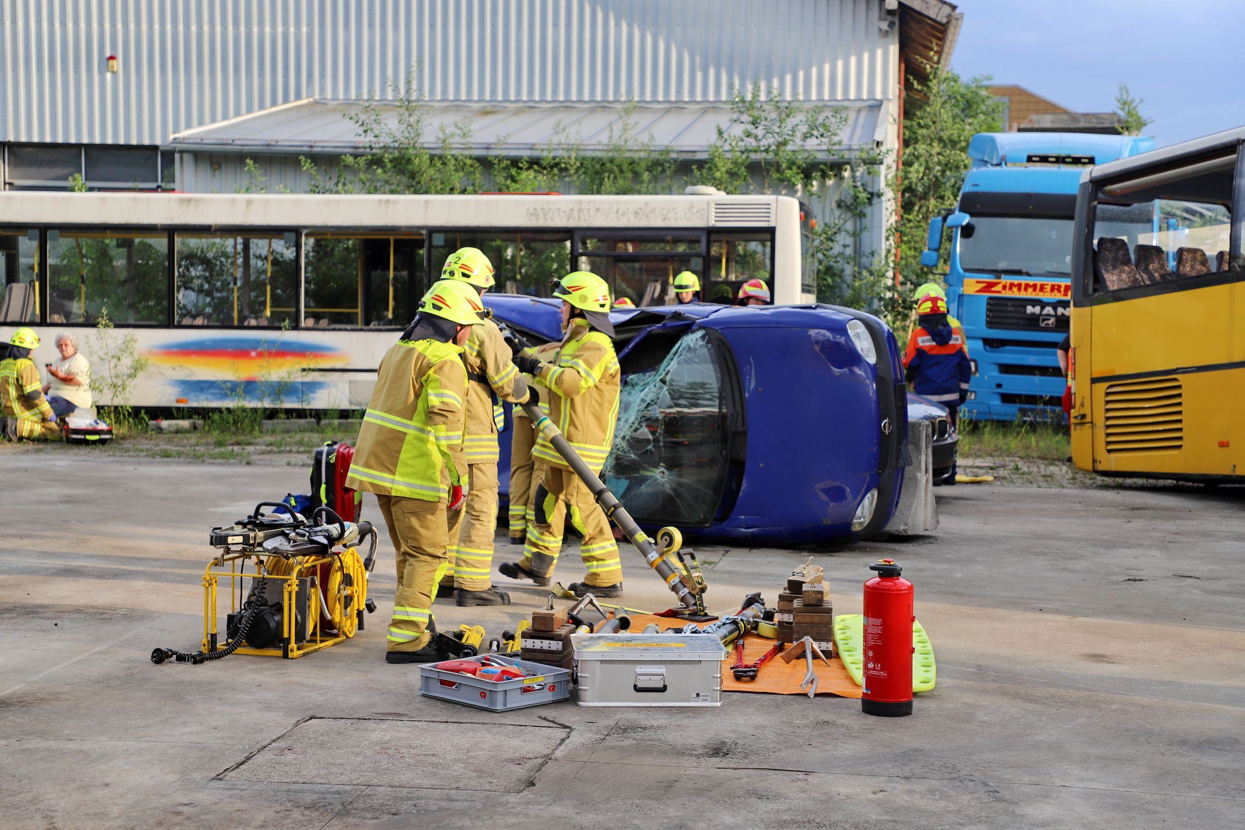 Fahrzeuge und den Einsatz des schweren Rettungsgeräts zur Befreiung der