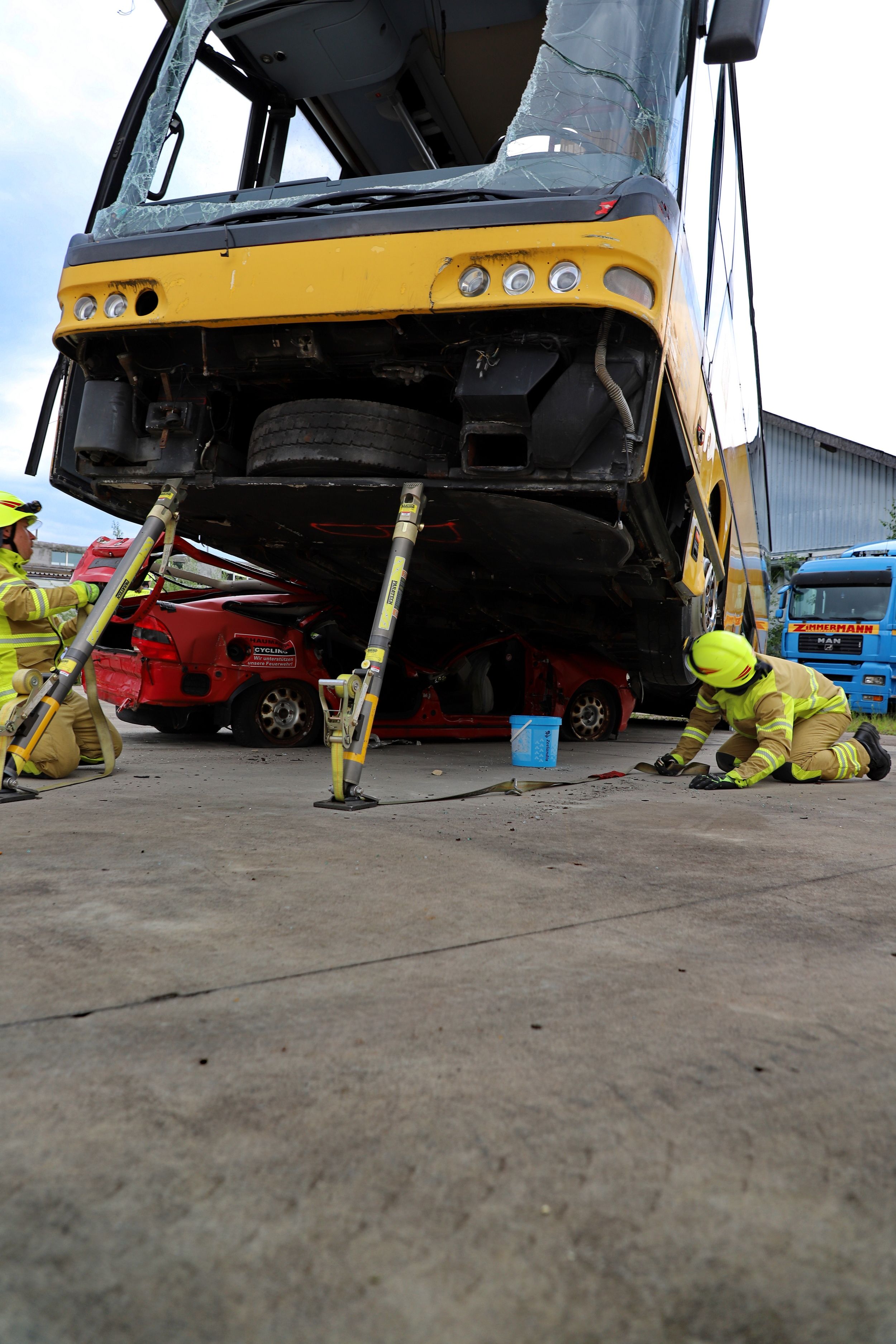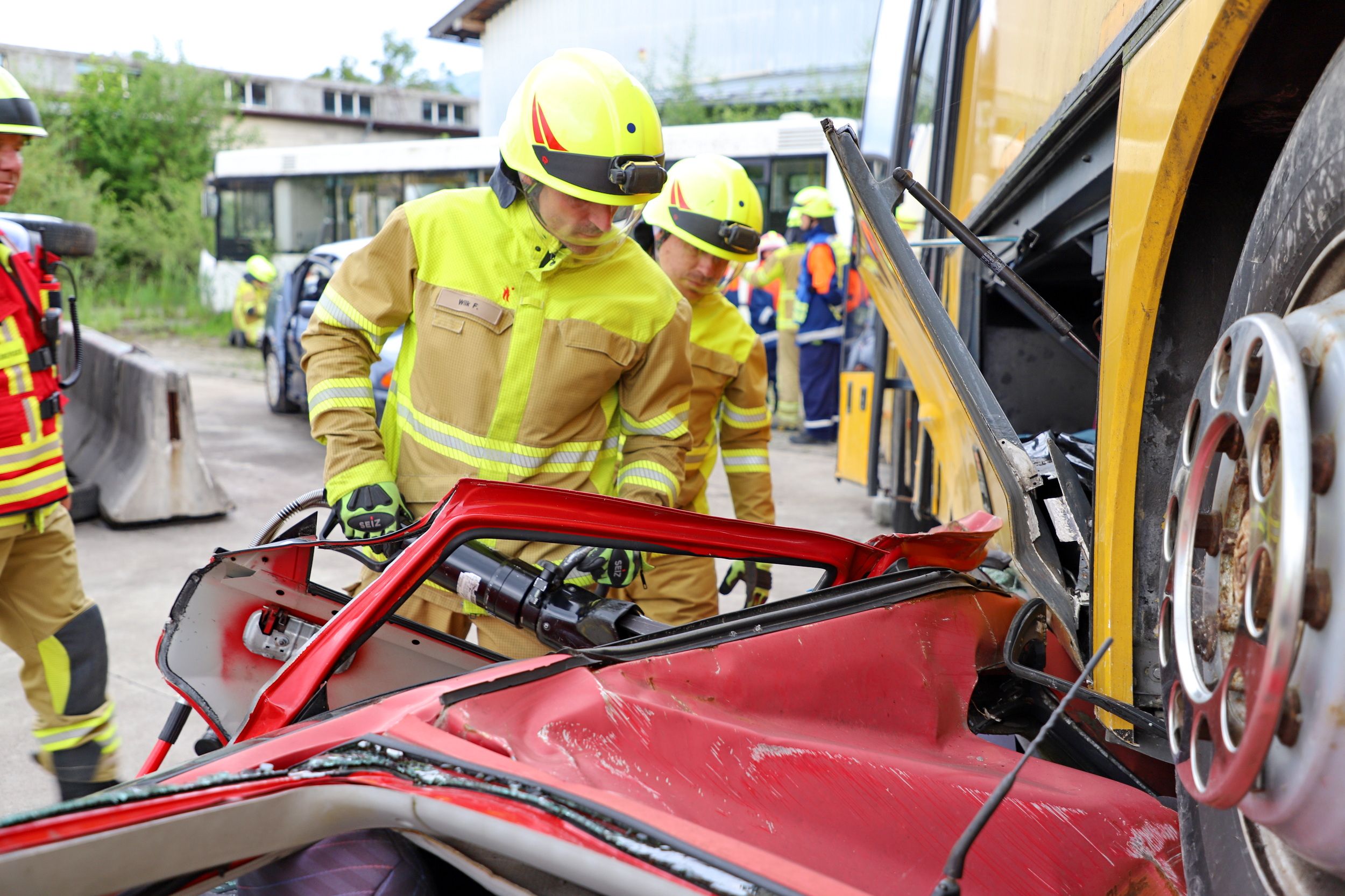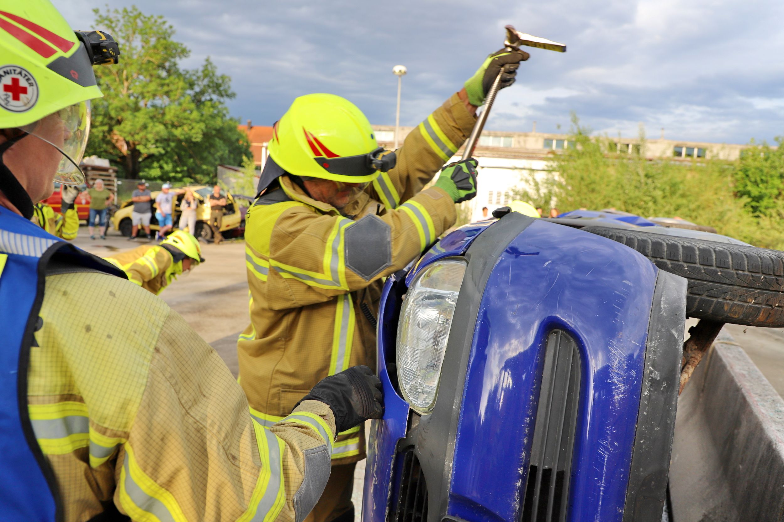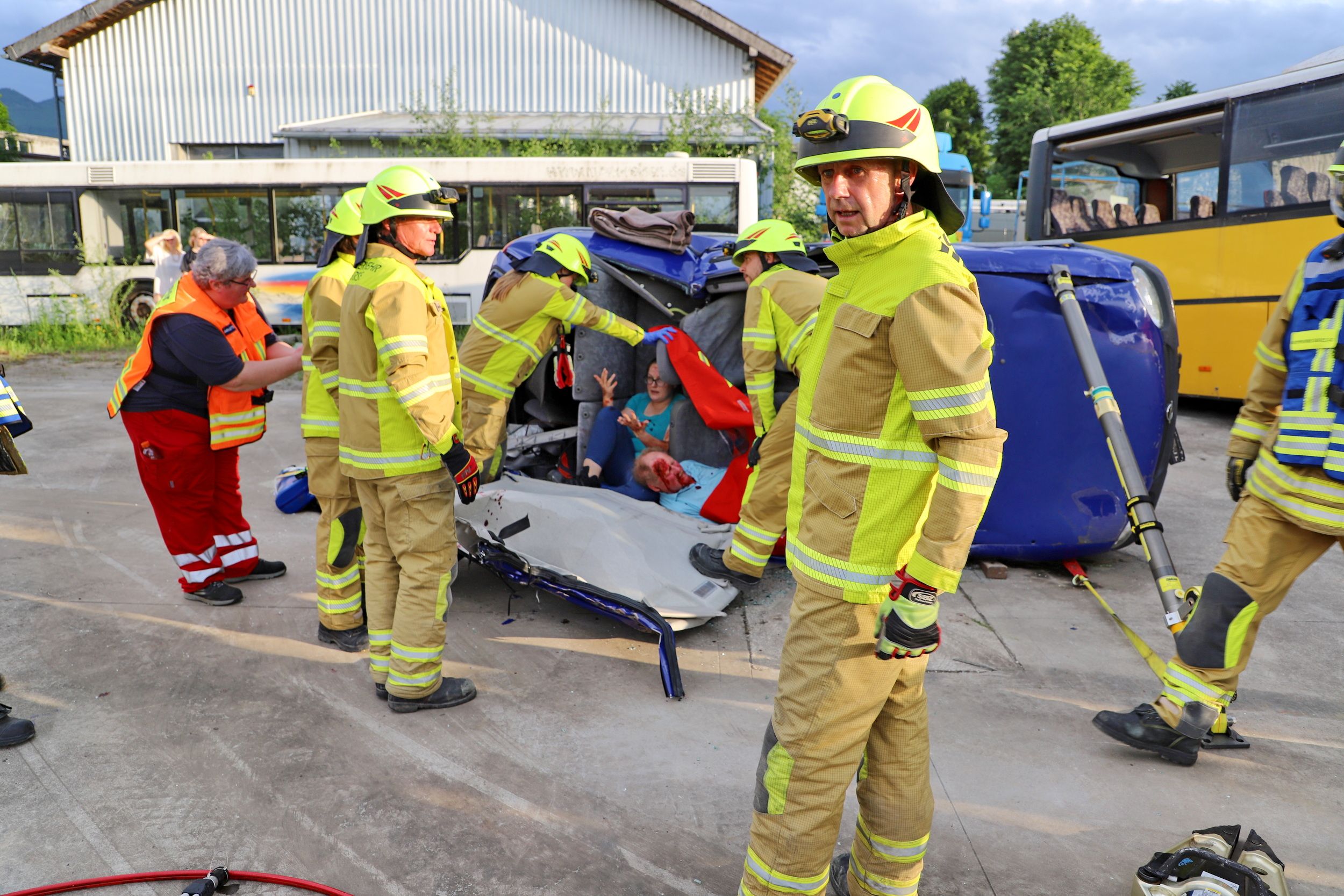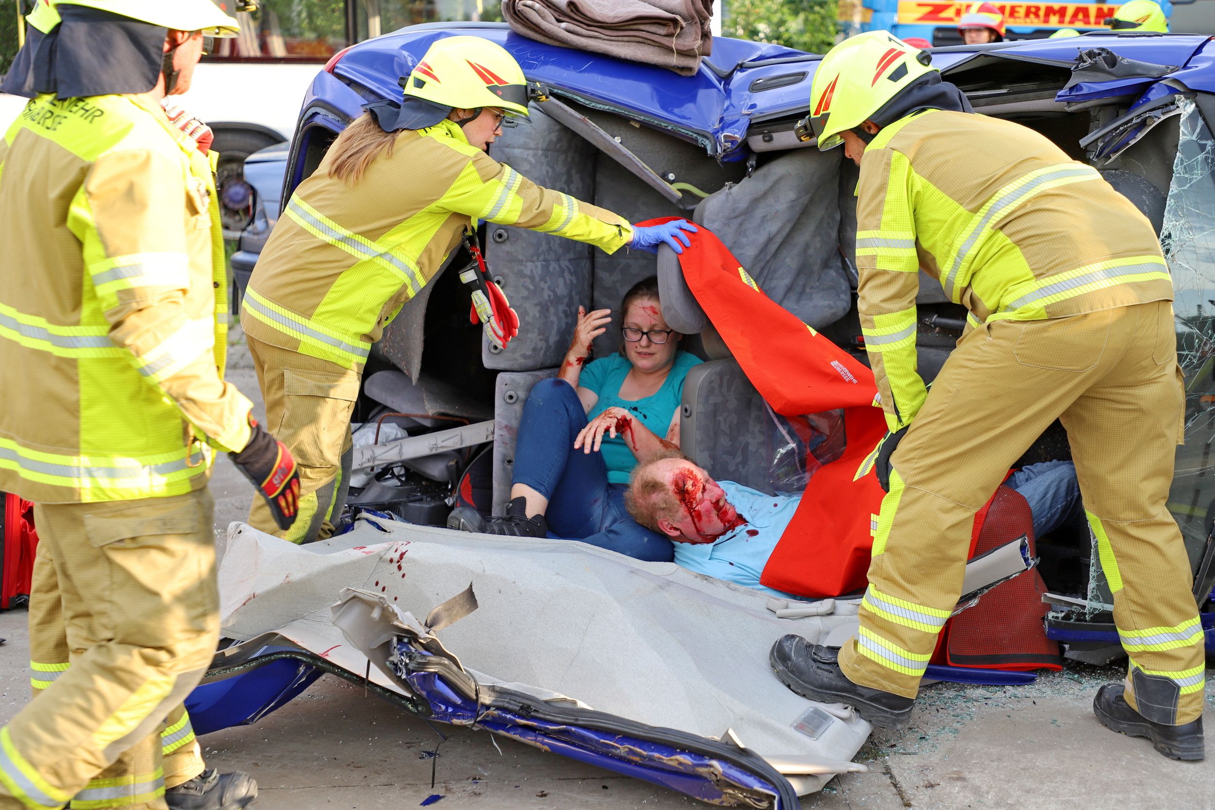zwei Insassen darin mussten möglichst schonend befreit werden. In einem Fahrzeug