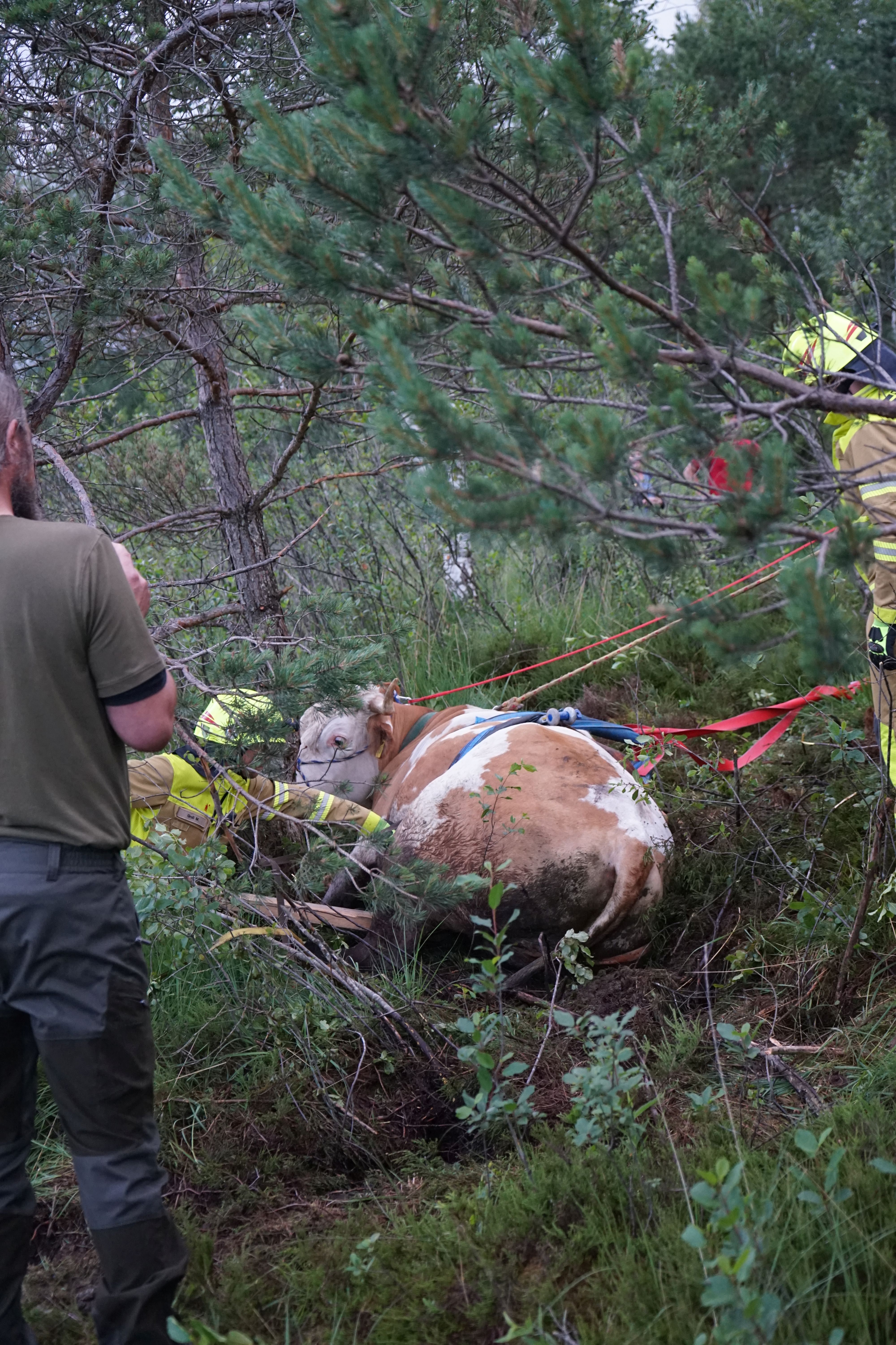 Der weiche Boden und das eher unwegsame Gelände machten die Rettungsaktion schwierig. In enger Abstimmung mit dem Veterinär wurden zunächst mögliche Rettungsvarianten besprochen und festgelegt. Als oberste Prämisse wurde eine schonende Rettung ausgegeben, die aus einer Kombination zwischen „fürsorglicher Manpower“ sowie den Einsatz technischer Hilfsmittel erreicht werden konnte.