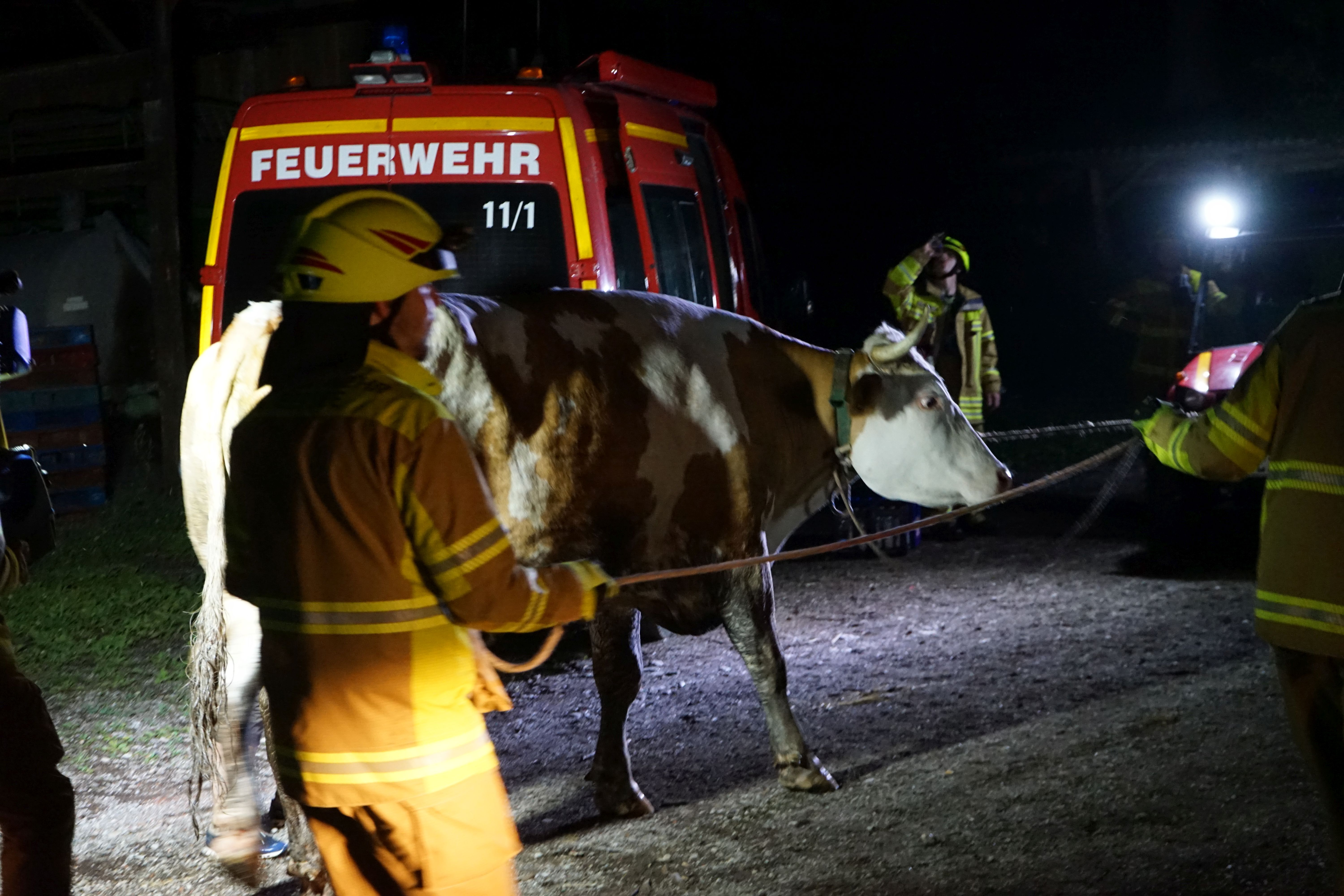 „Die Aufgabenstellung war durchaus komplex, umso glücklicher waren alle Beteiligten als der Ochse Berti am Ende auf eigenen Beinen in seinen Stall zurücklaufen konnte“, freut sich der Einsatzleiter Lucas Geppert im Gespräch mit Hubert Hobmaier von der Pressestelle des Kreisfeuerwehrverbandes Traunstein und ergänzt, „bei diesem Einsatz war einmal mehr eine breite Maßnahmenpalette und jede Menge Teamwork zwischen den Beteiligten nötig, um das Einsatzziel der Tierrettung zu erreichen“.