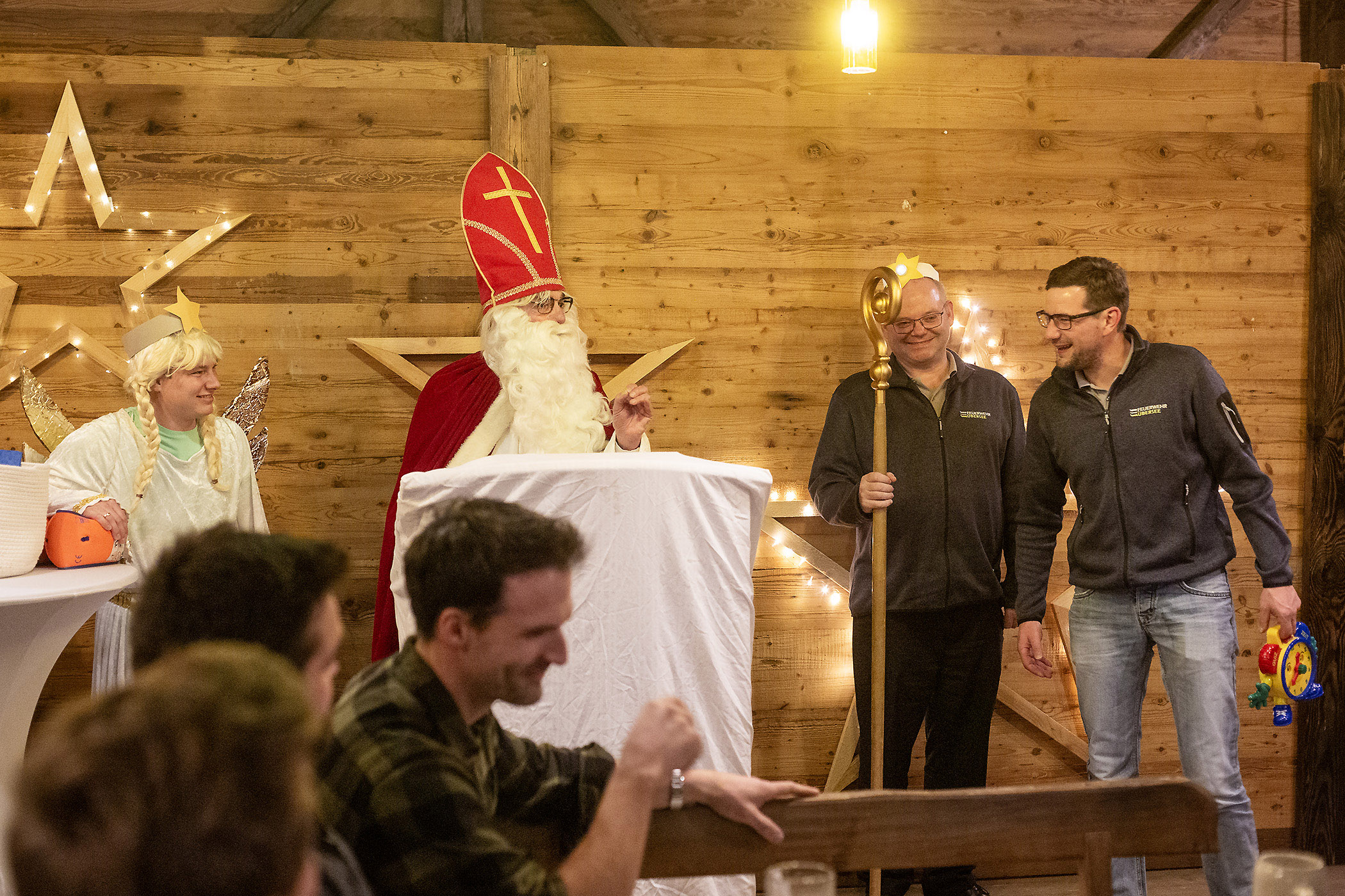 Am vergangenen Samstag fand die Nikolausfeier im gemütlichen Ambiente des Almdorado Übersee statt. Die Veranstaltung bietet immer eine wunderbare Gelegenheit für den Austausch zwischen verschiedenen Generationen – von den Mitgliedern der Jugendfeuerwehr über die aktiven Kameradinnen und Kameraden bis zu unseren passiven Mitgliedern, die mit ihren Partnern an diesem Abend teilnehmen. Im Mittelpunkt des Abends stand der Besuch des Nikolaus, der von seinen Engeln mit humorvollen Anekdoten die kleine Geschichten und Fauxpas der vergangenen Jahre aufarbeitete und dabei für viele Lacher sorgte.
