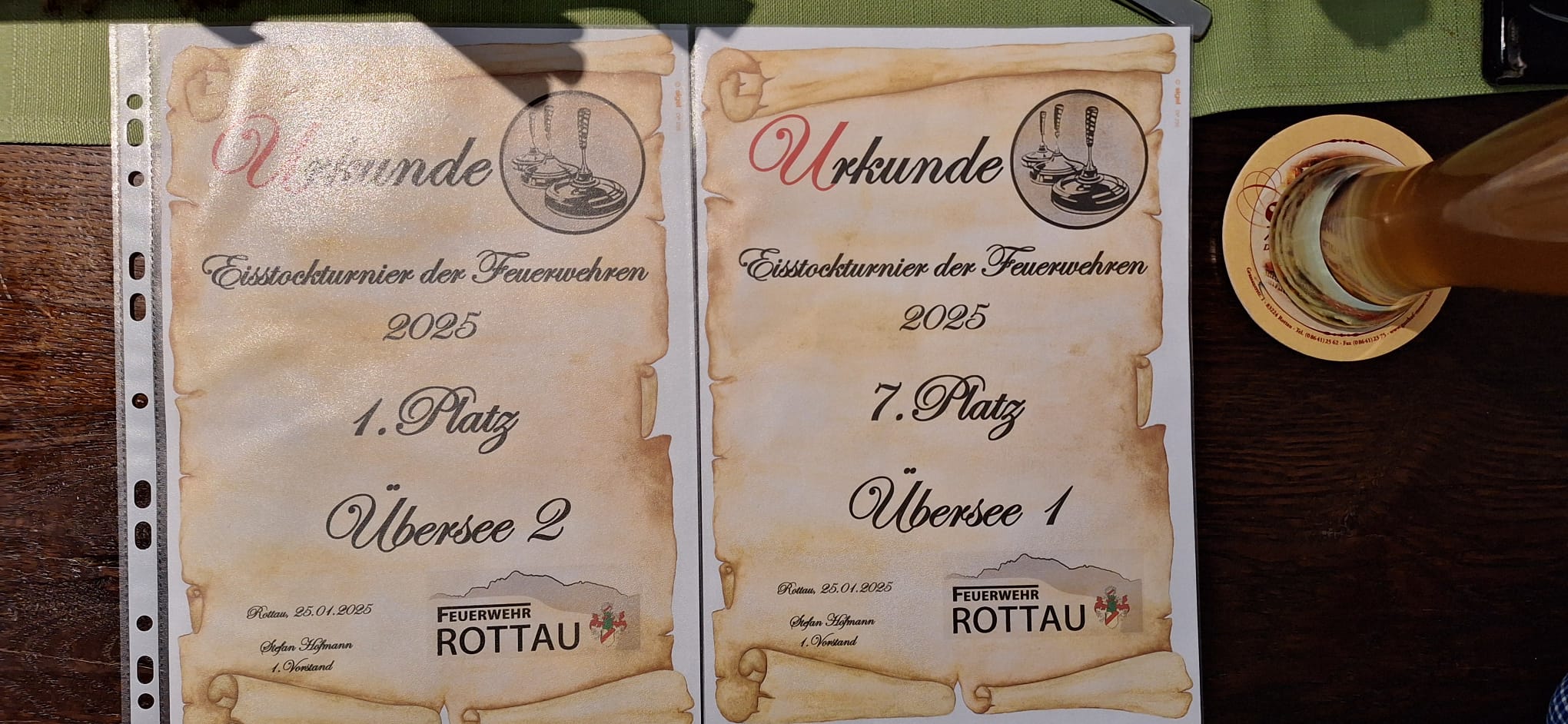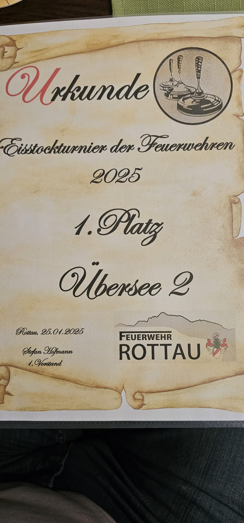 Am Samstag, den 25. Januar fand in der Eishalle Inzell das traditionelle Eistockturnier der Feuerwehren statt, ausgerichtet von der Feuerwehr Rottau. Insgesamt 19 Teams aus der Region traten gegeneinander an, um in einem spannenden Wettkampf den Sieger zu ermitteln. Teilnehmer des Turniers waren die Feuerwehren aus Marquartstein, Grassau, Rottau, Oberwössen, Schleching, Unterwössen, Staudach und Hammer. Die Feuerwehr Übersee war wie die meisten Orte mit zwei Gruppen vertreten.